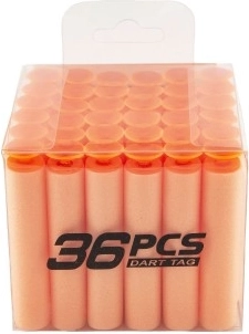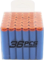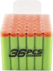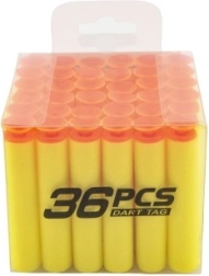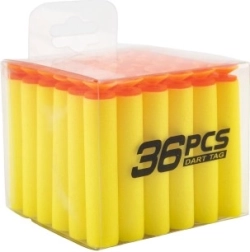 Uzupełnij amunicję do swoich piankowych blasterów praktycznym zestawem 36 zapasowych strzałek z przyssawką w przezroczystym pudełku. Strzałki z miękkiej pianki są bezpieczne do zabawy, kompatybilne z popularnymi zabawkowymi pistoletami, a dzięki przenośnemu pudełku masz zapas zawsze pod ręką.