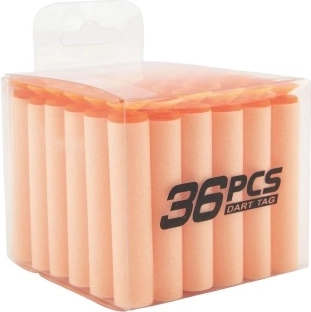 Strzałki pasują do większości standardowych piankowych blasterów i są idealne jako szybki zamiennik zgubionych lub zużytych elementów. Kompaktowe opakowanie o wymiarach 8 × 7 × 8 cm mieści się w plecaku lub kieszeni i utrzymuje strzałki w porządku.