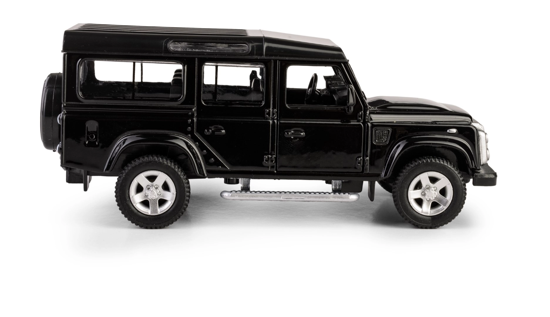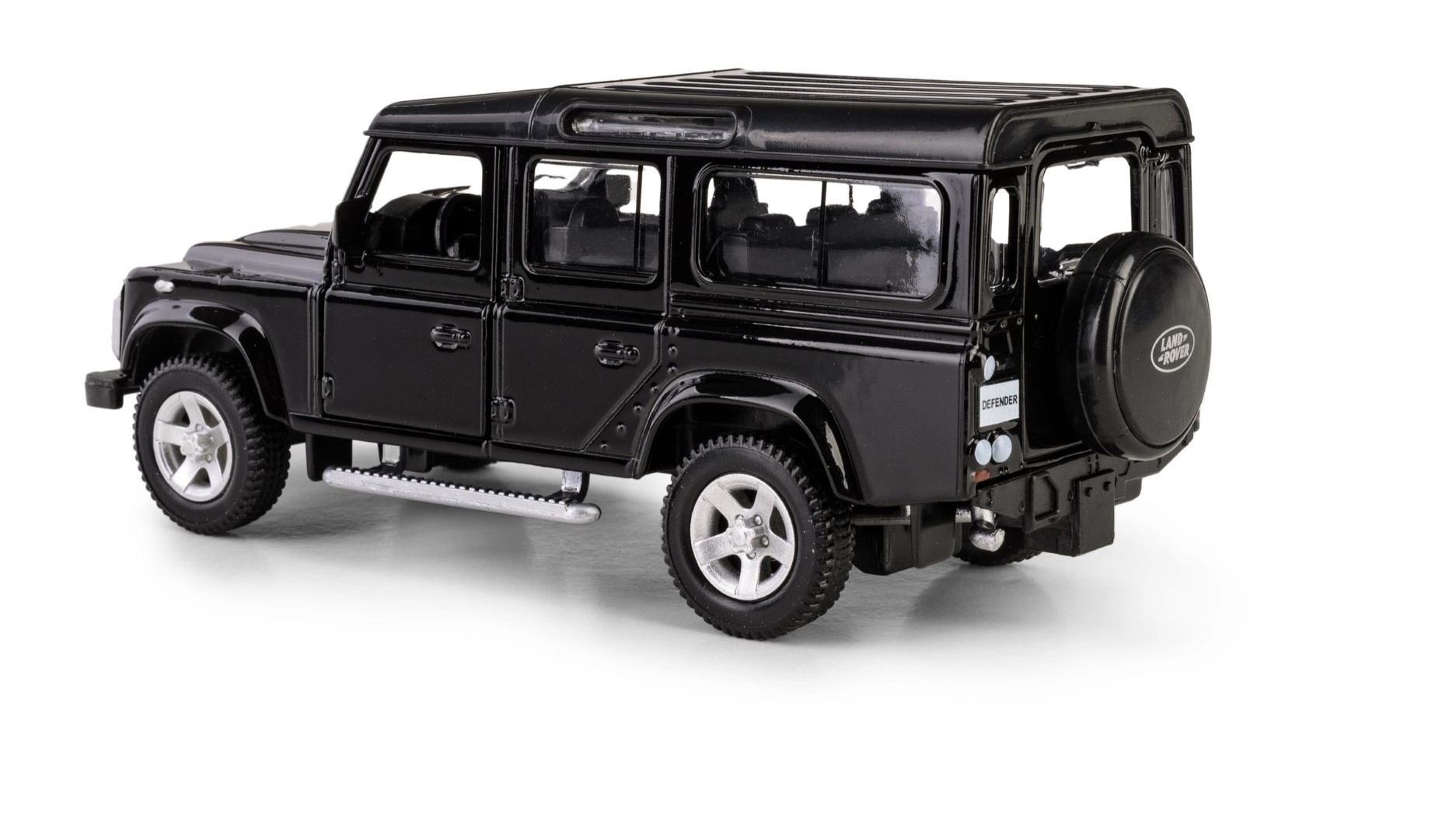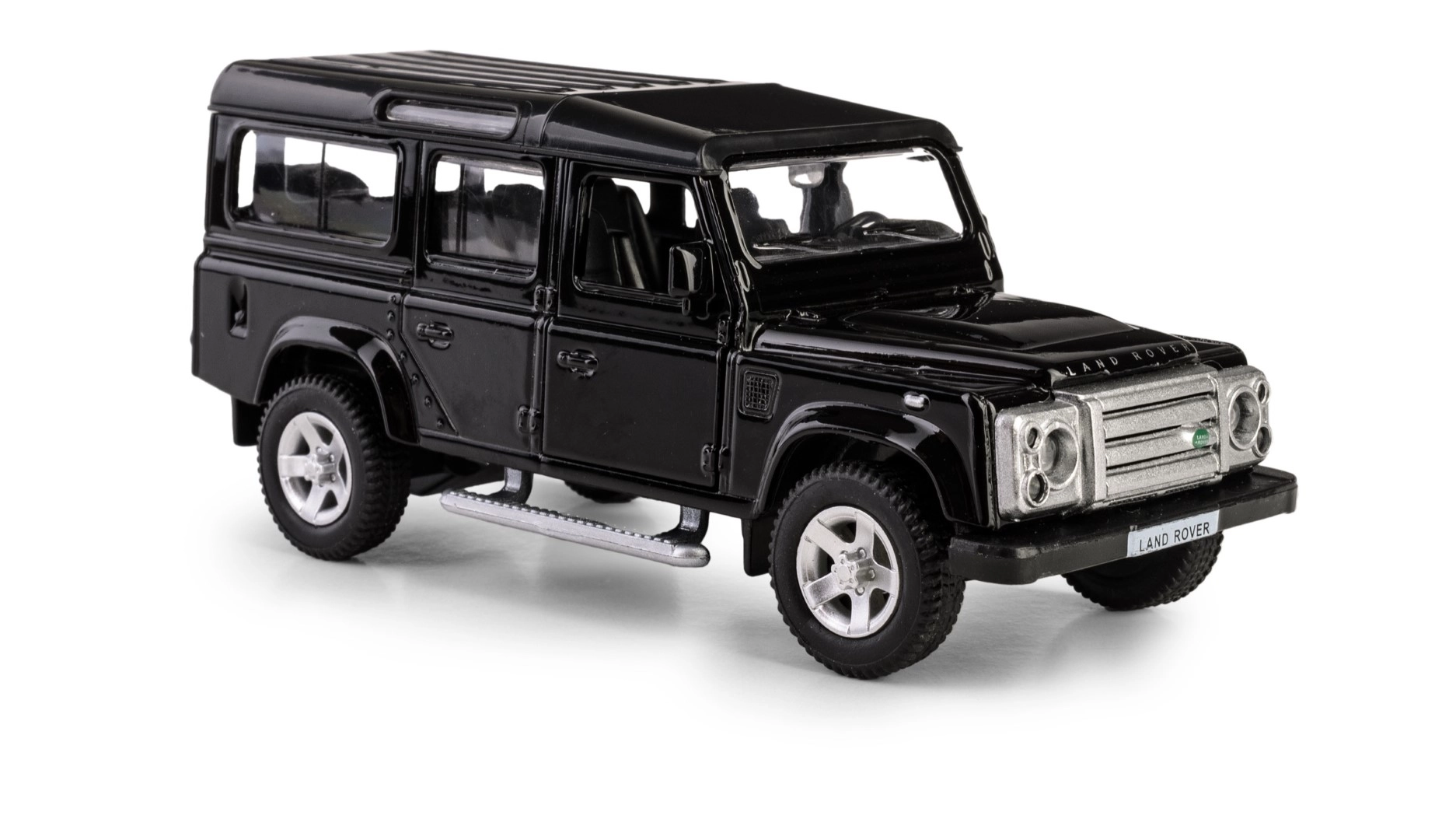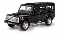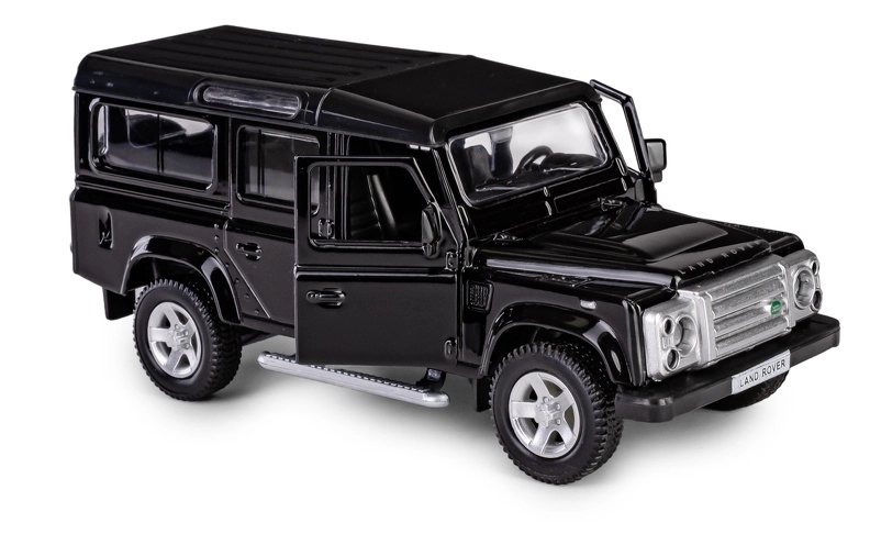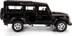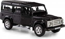 Odkryj szczegółową replikę legendarnego terenowego pojazdu LAND ROVER Defender 110 w eleganckim czarnym kolorze. Ten model die-cast w skali 1:35 łączy metalowe elementy z plastikowymi detalami, aby wiernie oddać charakterystyczne linie, grill, felgi i solidną sylwetkę oryginału. Otwierane przednie drzwi pozwalają zajrzeć do starannie zaprojektowanego wnętrza.