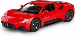 Przeżyj autentyczne wrażenia z modelowym autem MASERATI MC20 w skali 1:37. Metalowa karoseria z plastikowymi detalami wiernie odwzorowuje dynamiczne linie oryginału, a otwierane drzwi ujawniają starannie wykonane wnętrze. Dzięki napędowi pull-back wystarczy przeciągnąć model do tyłu, a pojazd sam ruszy naprzód.