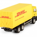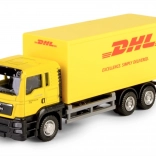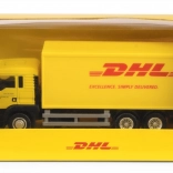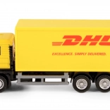 Autentyczne kolory, logotypy i proporcje pojazdu DHL dzięki oficjalnej licencji. Precyzyjnie wykonana kabina, podwozie i przestrzeń ładunkowa ucieszą małych kierowców i kolekcjonerów.