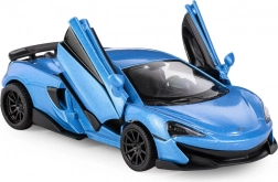 Ciesz się realistycznymi wrażeniami z metalowym modelem RMZ City McLaren 600LT w eleganckim niebieskim kolorze. Precyzyjne wykonanie karoserii, drobne detale i wysokiej jakości materiały sprawiają, że to świetny eksponat do witryny i jednocześnie trwała zabawka do codziennej zabawy. Otwierane boczne drzwi pozwalają zajrzeć do szczegółowego wnętrza, a gumowe opony zapewniają płynny ruch.