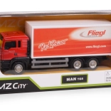 Detaliczna kabina MAN TGS i przyczepa FLIEGL z autentycznymi nadrukami oraz wieloma osiami zachwycą dzieci i kolekcjonerów.