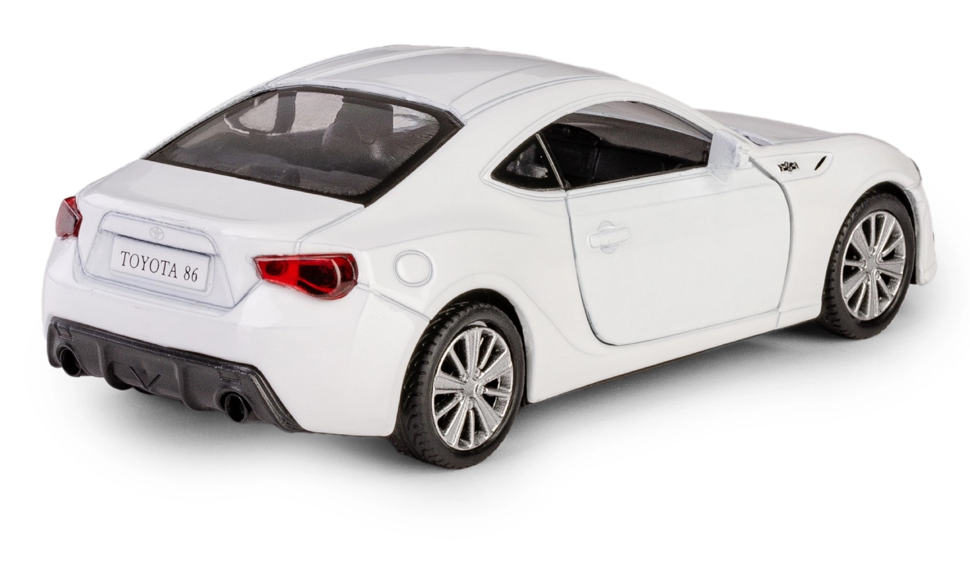 Szczegółowy model samochodu TOYOTA 86 w skali 1:32 zachwyci dzieci i kolekcjonerów. Ma metalowe nadwozie z plastikowymi dodatkami, otwierane drzwi, mechanizm sprężynowy typu pull-back oraz gumowe opony dla płynnej jazdy. Odpowiedni od 3 lat, spełnia normy CE.