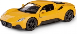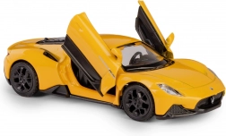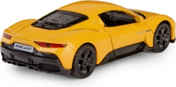 Metalowe nadwozie z plastikowymi elementami oraz sportowe felgi tworzą autentyczny wygląd prawdziwego MASERATI MC20. Idealny do zabawy i ekspozycji.
