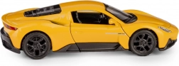 Model wyposażono w napęd sprężynowy typu pull-back – wystarczy nakręcić, puścić i auto żwawo rusza do przodu. Żółte malowanie, swobodnie obracające się koła oraz solidne materiały gwarantują długą trwałość podczas zabawy i atrakcyjny wygląd w gablocie.