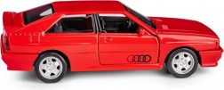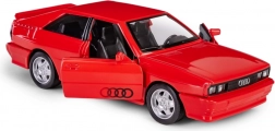 Ciesz się kultowym samochodem sportowym w kieszonkowym wydaniu. Ten licencjonowany metalowy model AUDI QUATTRO Coupe 1:35 oferuje napęd pull-back dla dynamicznej jazdy, otwierane drzwi z wglądem w realistyczne wnętrze oraz precyzyjne detale nadwozia w czerwonym kolorze. Idealny dla kolekcjonerów i dzieci od 3 lat.