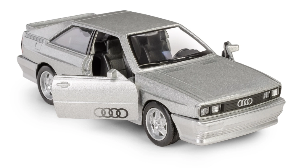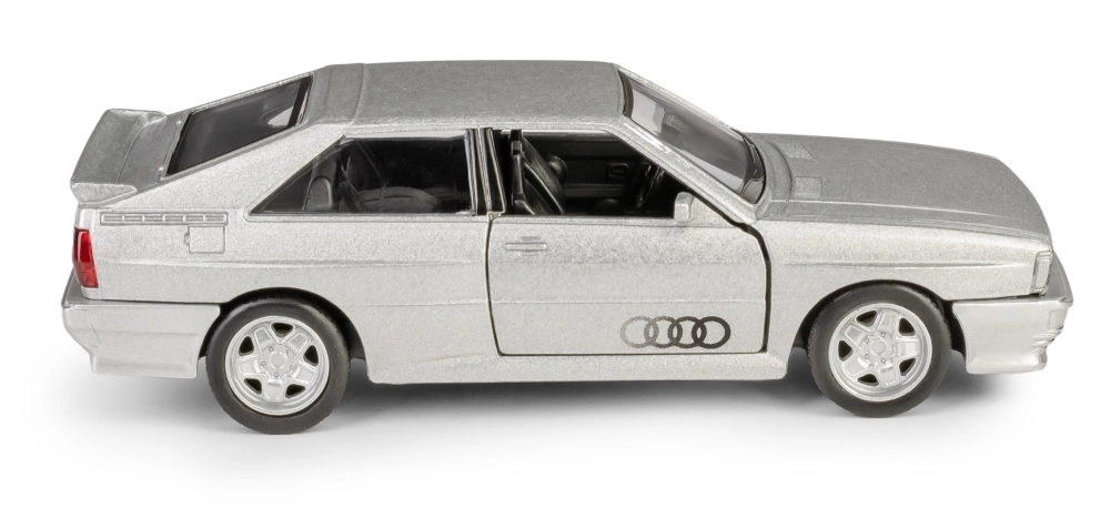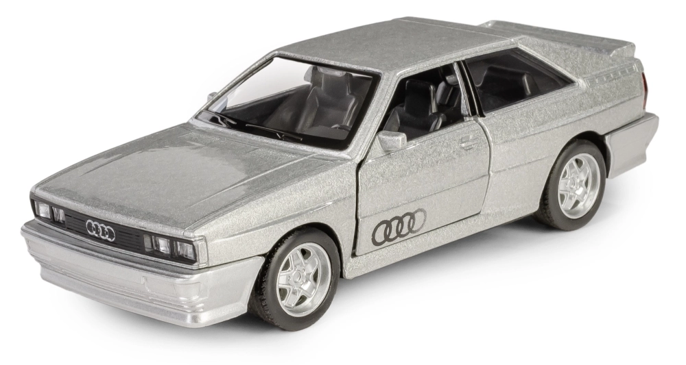 Metalowy model RMZ City Audi Quattro Coupé srebrny 1:35 z napędem pull-back
