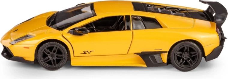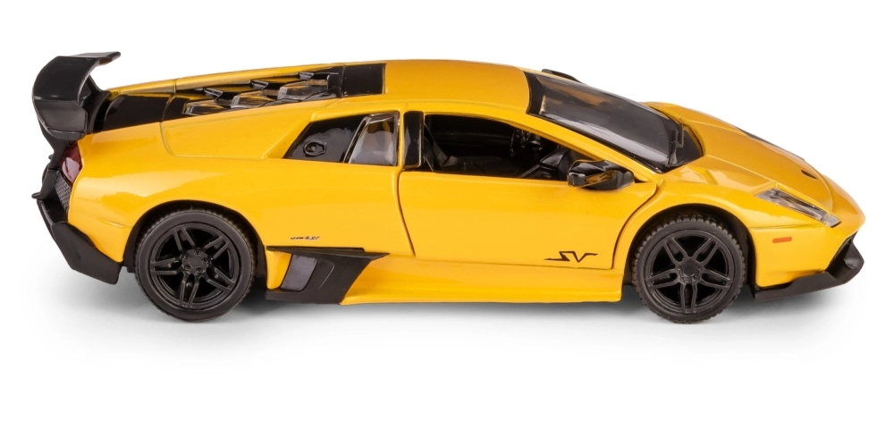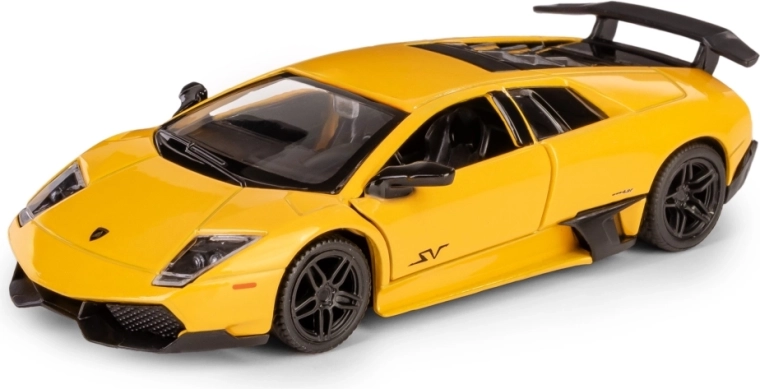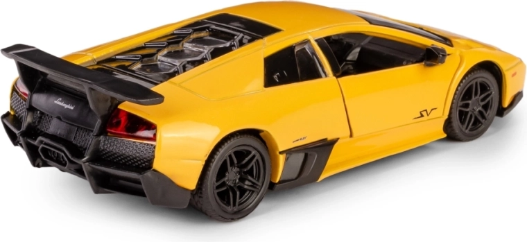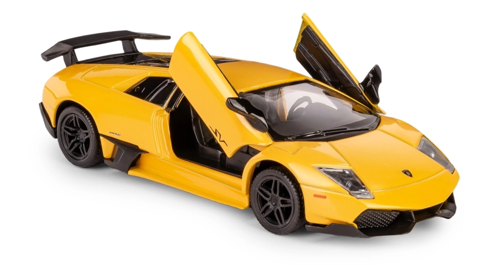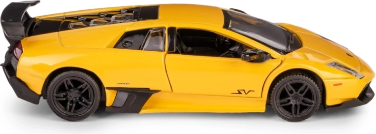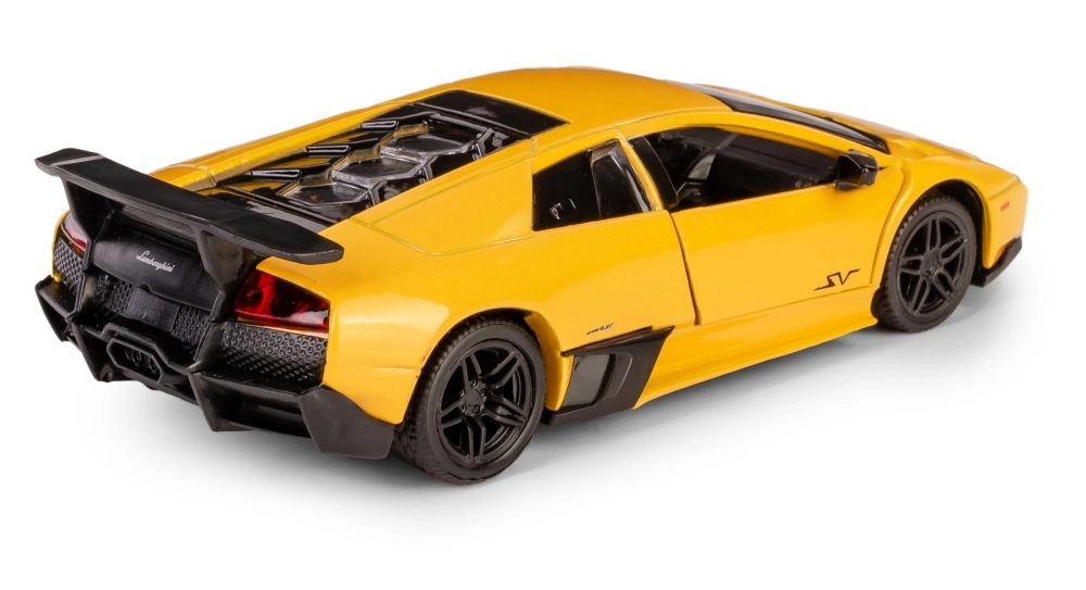 Szczegółowy kolekcjonerski model auta Lamborghini Murciélago LP670-4 SV w skali 1:36 ucieszy dzieci i dorosłych fanów motoryzacji. Metalowe wykonanie z plastikowymi elementami zapewnia wysoką jakość, otwierane drzwi dodają realizmu, a mechanizm pull-back gwarantuje świetną zabawę podczas jazdy. Oficjalna licencja i spełnienie europejskich norm bezpieczeństwa dają pewność bezpiecznej zabawy od 3. roku życia.