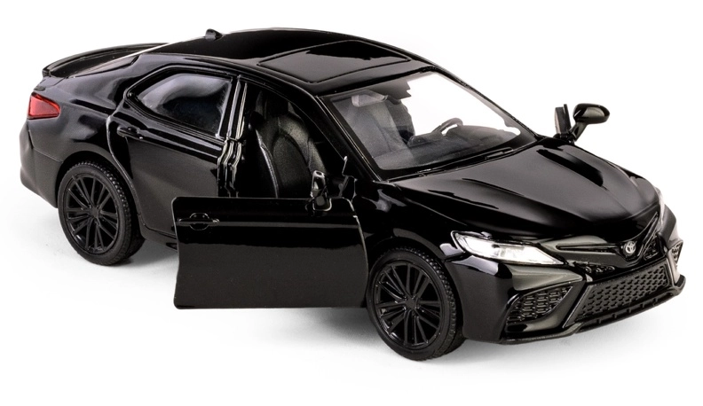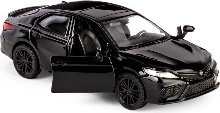 Ciesz się realistycznym doświadczeniem z metalowym modelem TOYOTA Camry 2022 w eleganckim czarnym kolorze. Dzięki wysokiej jakości wykonania i dopracowanym detalom wnętrza oraz nadwozia, ten model to świetny wybór dla fanów motoryzacji i kolekcjonerów. Napęd pull-back zapewnia żwawy ruch do przodu po naciągnięciu, a otwierane drzwi odsłaniają dopracowane wnętrze.