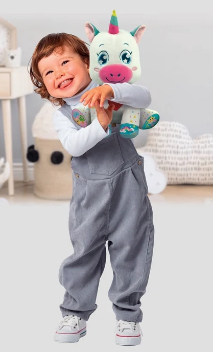 Interaktywny pluszowy jednorożec to świetny towarzysz pierwszych odkryć. Dzięki pięciu sprytnym przyciskom dzieci w zabawny sposób poznają litery, liczby, kształty i kolory, a wesołe melodie i rymowanki rozwijają słuch oraz zasób słów. Świecące buźki i róg przyciągają uwagę i wspierają stymulację wzrokową.