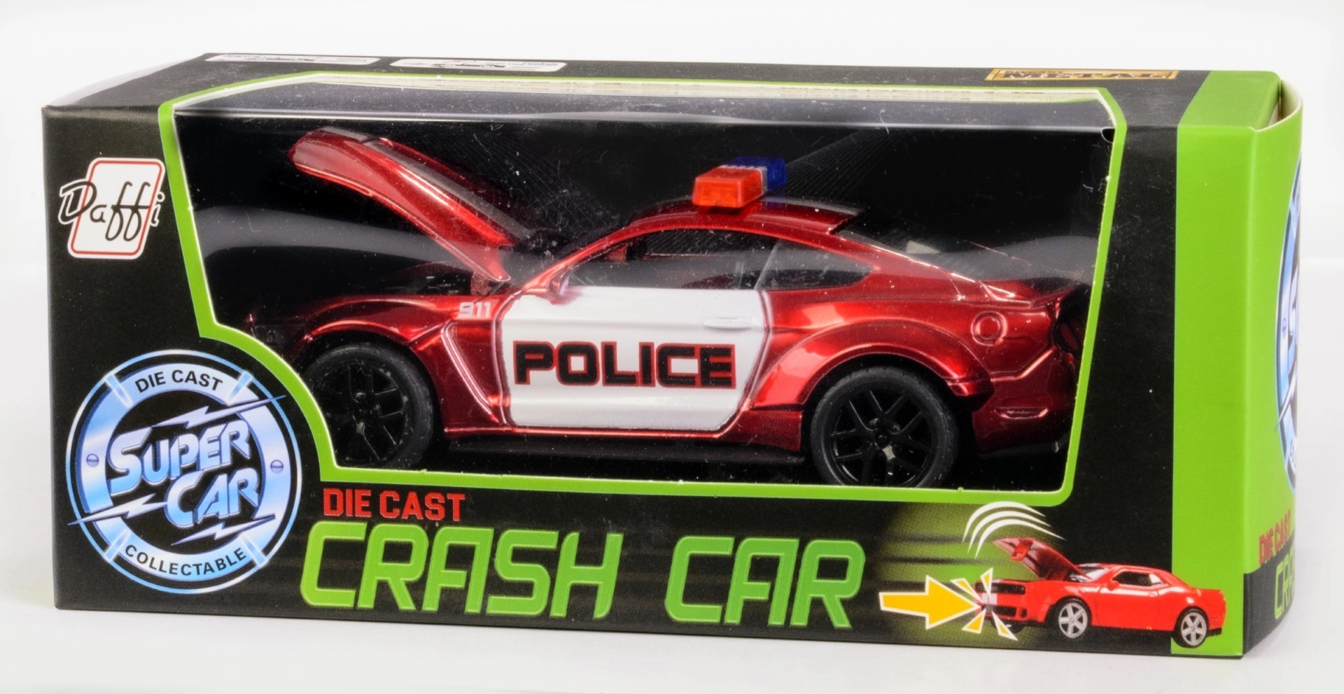 Ciesz się dynamiczną jazdą z metalowym modelem auta Daffi Crash Car, który oferuje napęd pull-back (naciągany) oraz realistyczną funkcję crash z automatycznym otwieraniem maski przy zderzeniu. Dzięki połączeniu metalu i elementów z tworzywa jest wytrzymały, lekki i idealny dla dzieci od 3 lat.