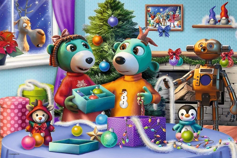Ciesz się wraz z dziećmi układaniem pięknej świątecznej sceny z bohaterami serialu Rodzina Treflików. Puzzle zawierają 100 precyzyjnie wyciętych elementów, które doskonale do siebie pasują i po ułożeniu tworzą obrazek o wymiarach 41 × 27,5 cm. Dzięki specjalnemu kalandrowanemu papierowi powierzchnia delikatnie się błyszczy i lepiej się z nią pracuje.