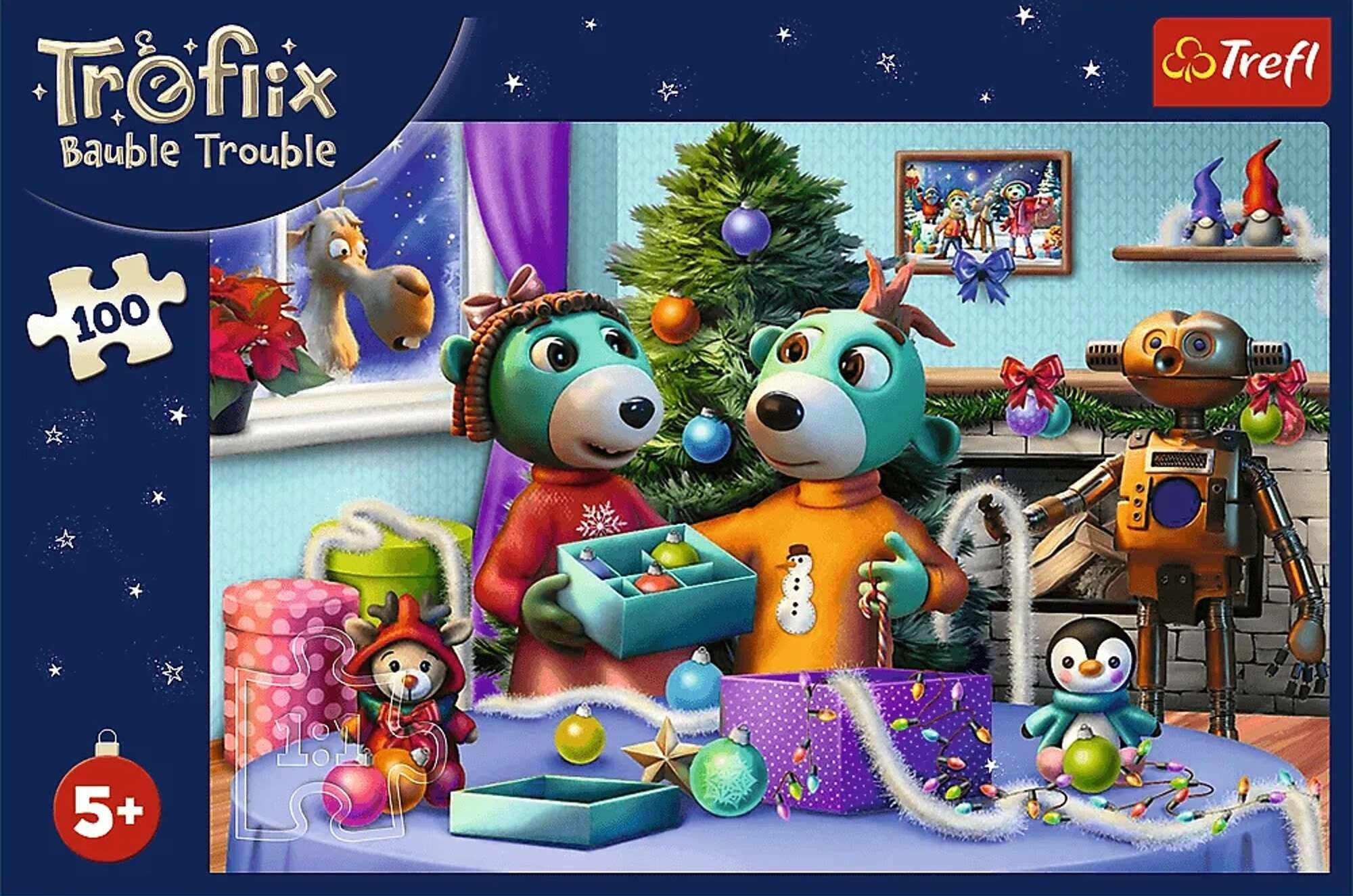 Dziecięce puzzle marki Trefl z motywem ulubionego serialu Rodzina Treflików zawierają 100 elementów, które po ułożeniu tworzą obrazek o wymiarach 41 × 27,5 cm. Wysoka jakość wykonania, ekologiczne i bezpieczne materiały oraz świąteczny motyw wspierają koncentrację, cierpliwość i logiczne myślenie dzieci od 5 lat.