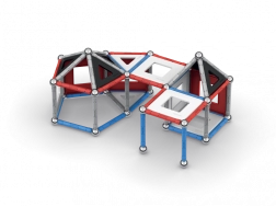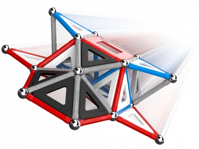 Trójkątne i kwadratowe ramy umożliwiają tworzenie rozmaitych kształtów i konstrukcji. Lekkie, lecz wytrzymałe elementy wspierają wyobraźnię i eksperymentowanie.