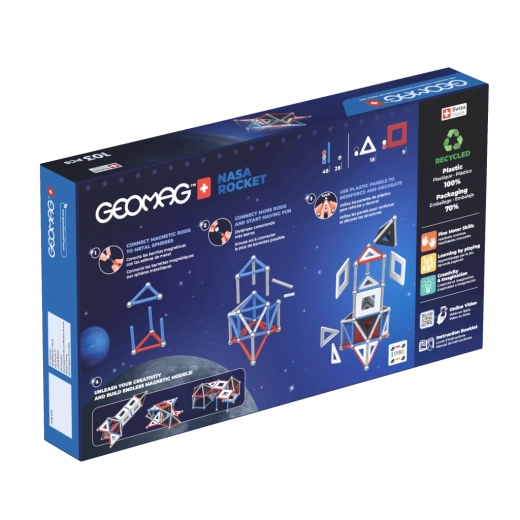 Ta limitowana edycja magnetycznej konstrukcji GEOMAG powstała we współpracy z NASA i zachwyci małych i dużych fanów kosmosu. Dzięki silnym magnesom, lekkim ramom i metalowym łącznikom z łatwością zbudujesz rakietę, moduł księżycowy oraz fantazyjne konstrukcje. Wytrzymałe elementy i sprytne połączenia gwarantują stabilność modeli i płynną zabawę.