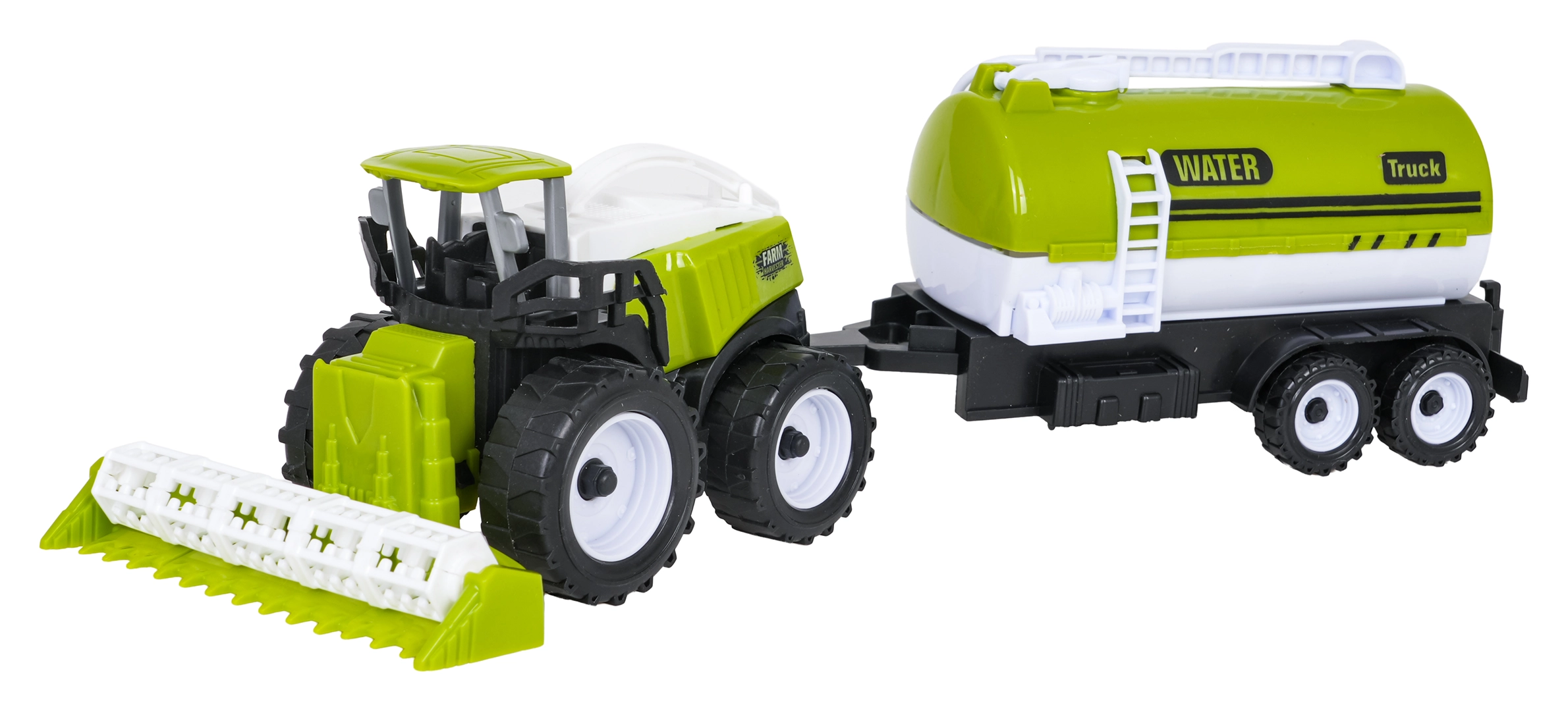 - cysterna na wodę. Dzięki kompaktowym wymiarom zestaw nadaje się do zabawy w domu i na dworze, a także będzie świetnym prezentem dla miłośników maszyn rolniczych.
