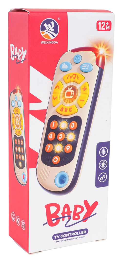 Ten kolorowy dziecięcy pilot naśladuje prawdziwy pilot telewizyjny i zachęca dzieci do odkrywania. Oferuje trzy tryby: liczby, „telewizyjną” zawartość oraz minigrę „whack-a-mole” z podświetlanymi przyciskami. Duże, miękkie przyciski i przyjemne świetlne wskazania wspierają koordynację ręka–oko i rozwój słownictwa.