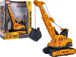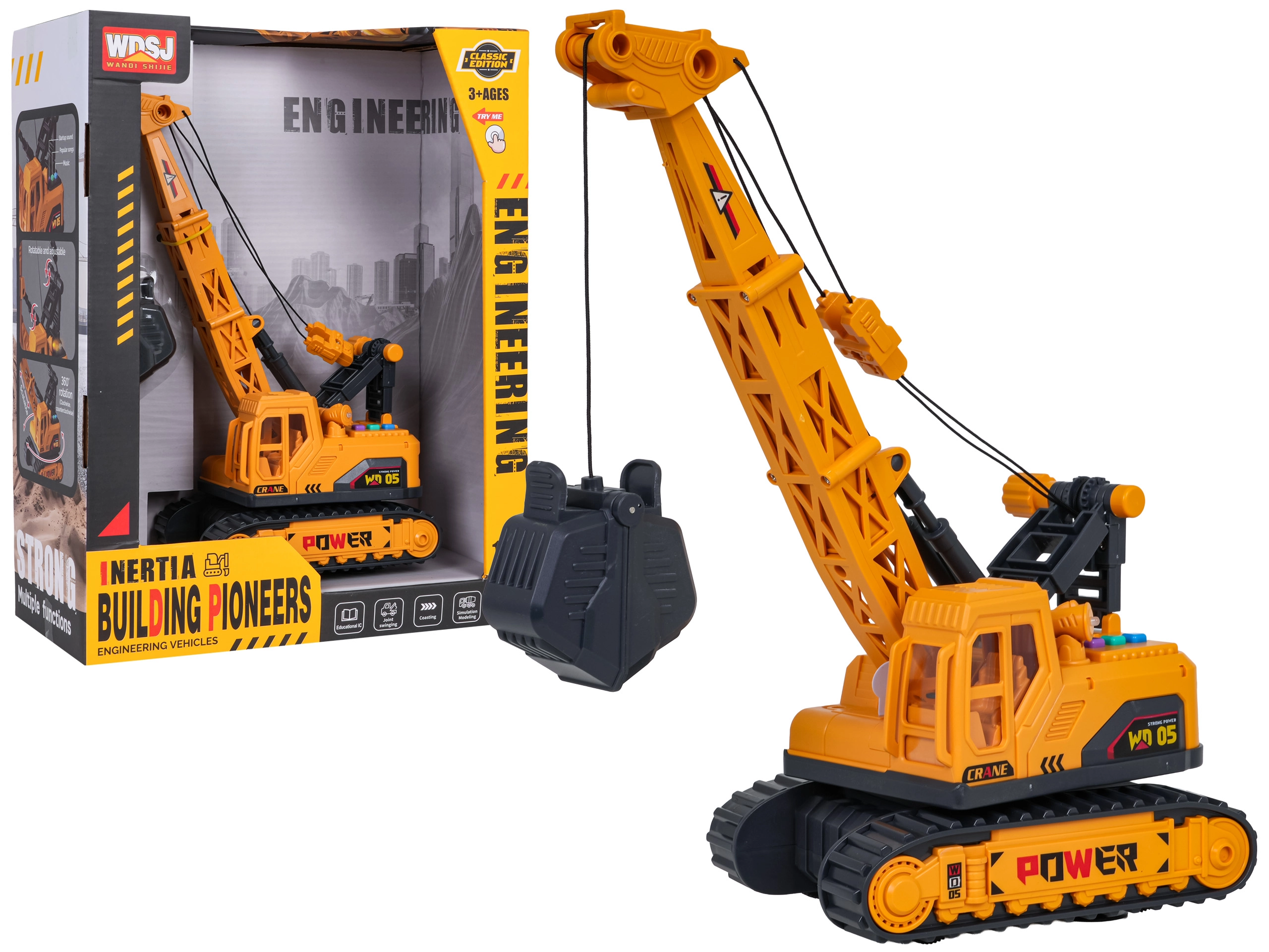 Odkryj realistyczną zabawę z żurawiem budowlanym w skali 1:16. Dzieci mogą łatwo sterować wysięgnikiem i koszem chwytakowym, obracać górną nadbudowę o 360° oraz uruchamiać efekty świetlne i dźwiękowe jednym naciśnięciem przycisku. Solidny podwozie gąsienicowe i dopracowane detale pobudzają wyobraźnię i rozwijają małą motorykę.