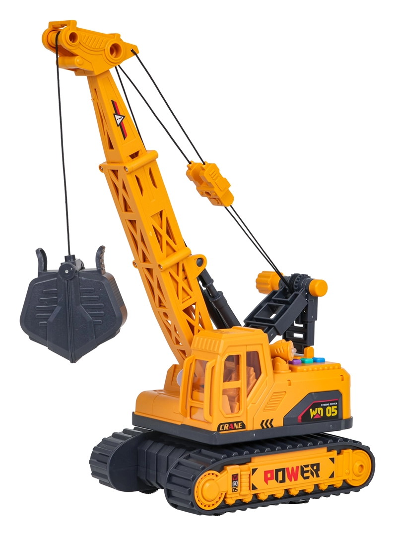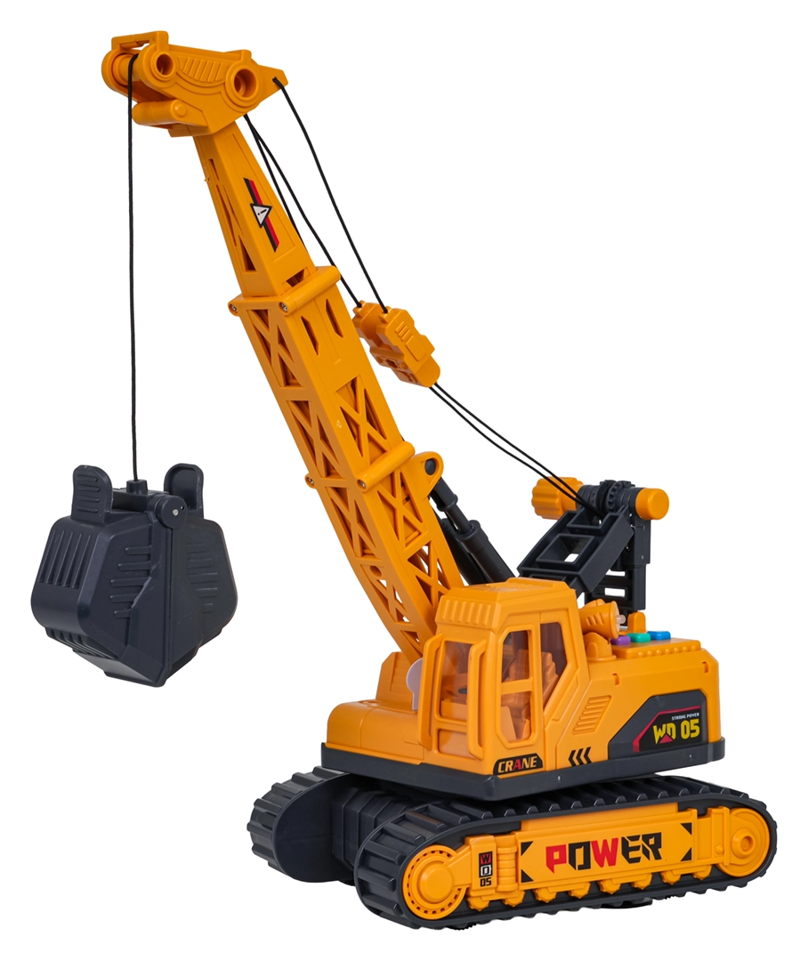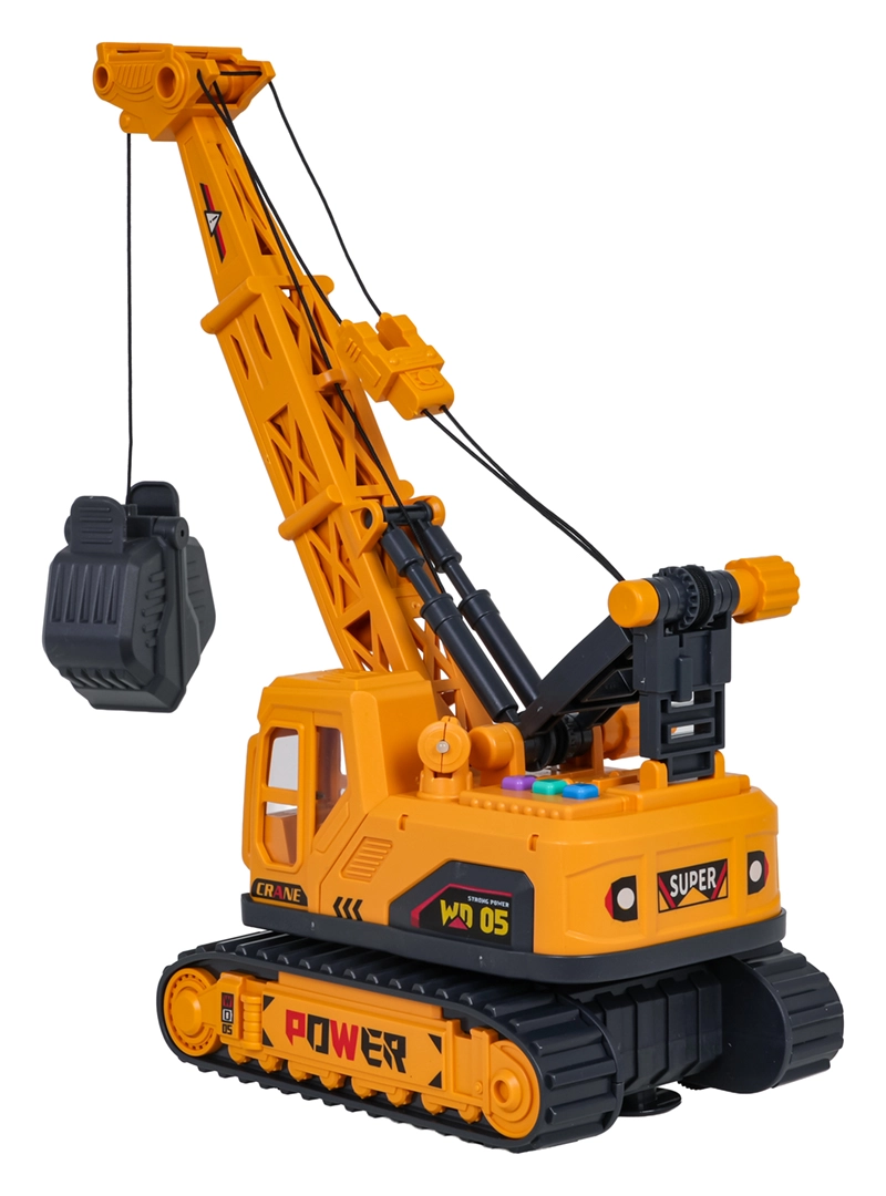 - Ręczne podnoszenie/opuszczanie wysięgnika i chwytaka, obrotowa podstawa 360°, efekty świetlne i dźwiękowe, napęd małych kółek