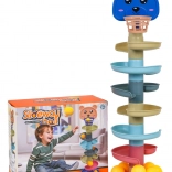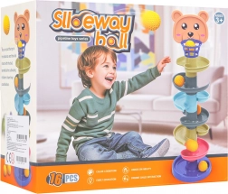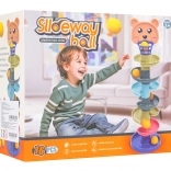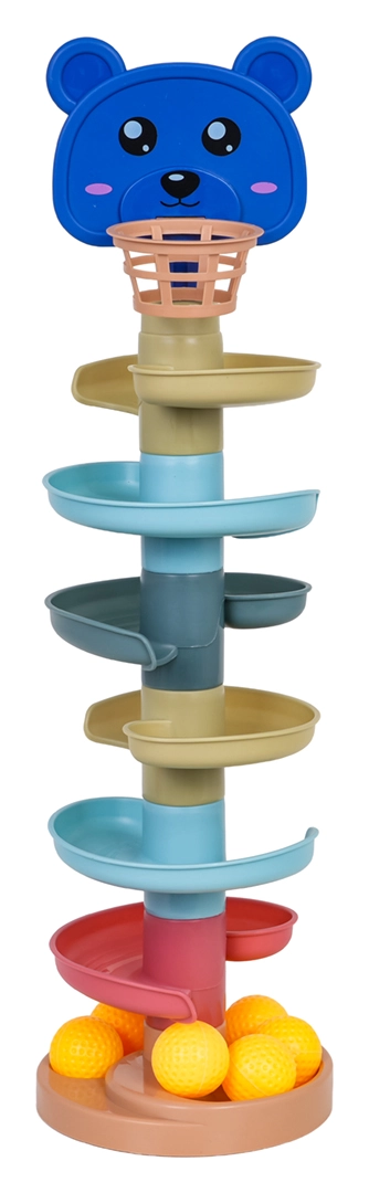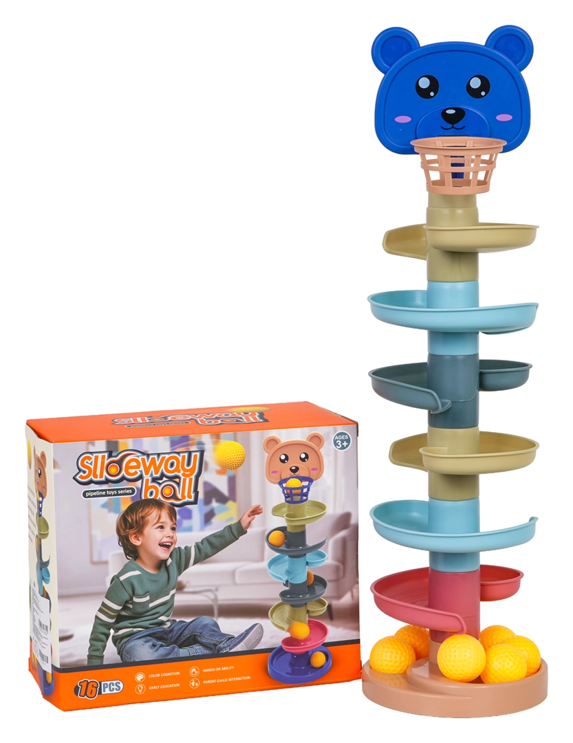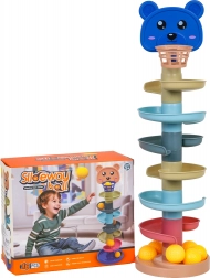 Ta kolorowa kulodromowa wieża z główką misia i górnym koszyczkiem zachwyci małych konstruktorów i ciekawe rączki. Elementy łatwo się zatrzaskują, budujesz wieżę nawet z 6 pięter i obserwujesz, jak piłeczki mkną spiralami w dół do podstawy. Im wyższą wieżę zbudujesz, tym większe wyzwanie trafić do koszyczka – świetna zabawa rozwijająca cierpliwość i koncentrację.