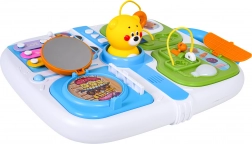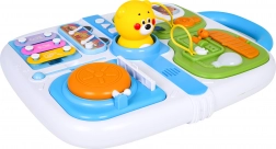 Mini cymbałki z pałeczką i piszczący miś pośrodku angażują dzieci oraz rozwijają słuch i poczucie rytmu. Zintegrowany uchwyt ułatwia przenoszenie.