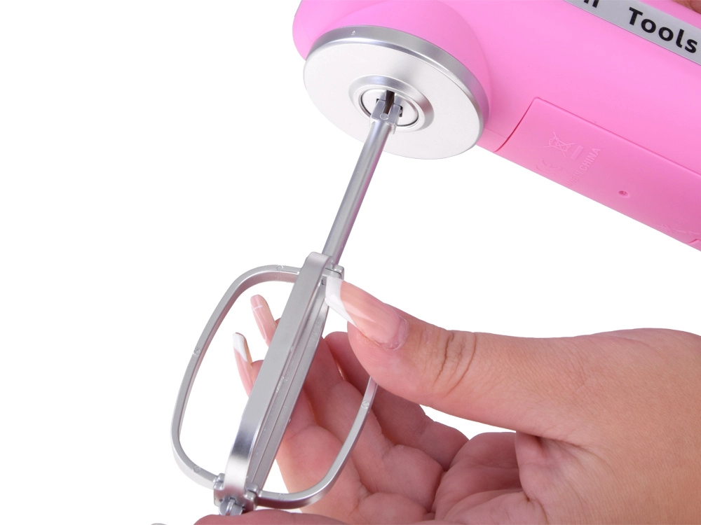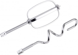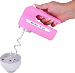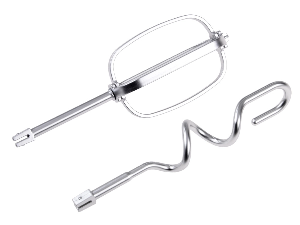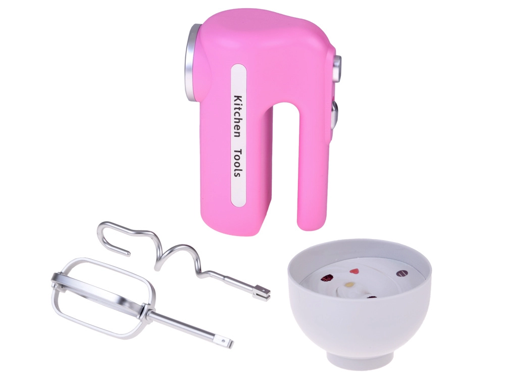 W komplecie znajdują się trzepaczka i hak do ciasta wraz z praktyczną misą – idealne do różnych rodzajów przepisów w zabawie.