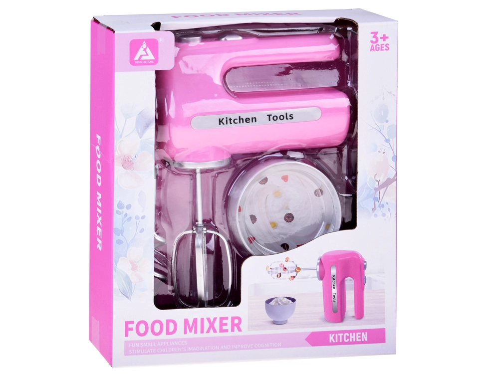 Zestaw obejmuje mikser, 2 końcówki mieszające (trzepaczka i hak do ciasta) oraz misę do wygodnego „ubijania” i „wyrabiania”. Zabawa wspiera małą motorykę, kreatywność i odgrywanie ról, dzięki czemu jest doskonałym prezentem dla dzieci, które lubią naśladować dorosłych i odkrywać świat gotowania.