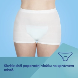 - Stabilna fiksacja wkładki – pewność i higiena w połogu.
