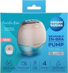 CANPOL babies Hands‑Free to bezprzewodowy elektryczny laktator zaprojektowany dla aktywnych mam. Dzięki kompaktowej konstrukcji mieści się w biustonoszu, pracuje cicho (max 50 dB) i zapewnia swobodę ruchu w domu, w pracy i w podróży. Trzy tryby naśladują naturalny rytm ssania dziecka, a w każdym z nich można wybrać 8 poziomów intensywności do 26 kPa dla maksymalnego komfortu.