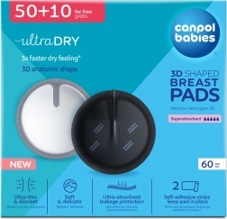 Canpol babies Ultra Dry 3D to jednorazowe, profilowane wkładki do biustonosza zaprojektowane dla mam w późniejszej ciąży oraz podczas karmienia piersią. Siedem warstw ochronnych i ultra chłonny rdzeń szybko zatrzymują wilgoć, a oddychające materiały utrzymują skórę w komforcie bez podrażnień. Cienkie wykonanie (tylko 1,3 mm) zapewnia maksymalną dyskrecję także pod dopasowaną bielizną.