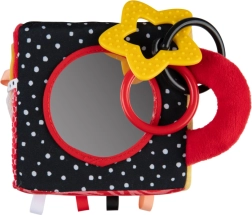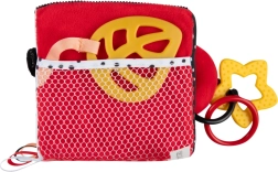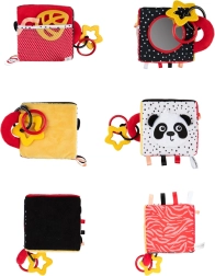 - Szeleszczące elementy, delikatna grzechotka, bezpieczne lusterko, elastyczny gryzak, kieszonka na gryzak