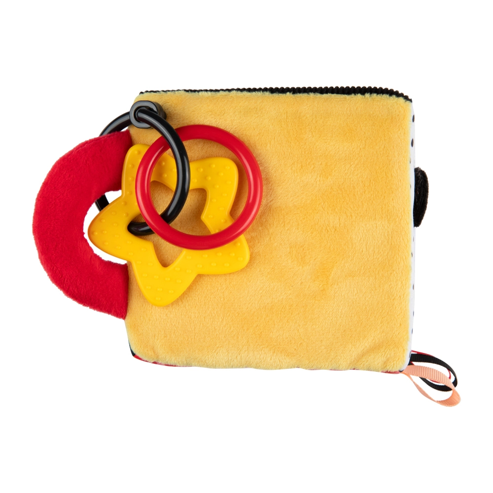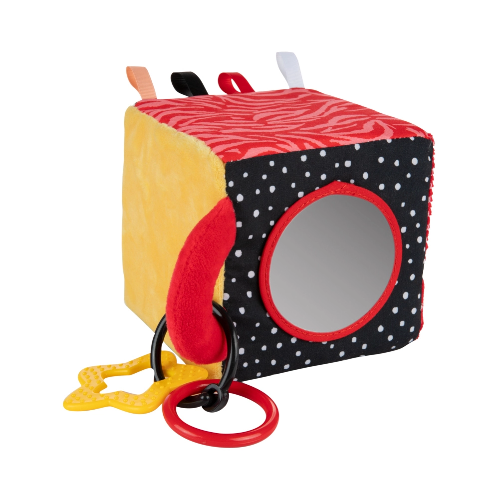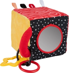 Praktyczne kółko pozwala przymocować kostkę do wózka, huśtawki czy fotelika samochodowego – doskonała w domu, na spacer i w podróż. Gryzak przymocowany na wstążce można schować do kieszonki, co w angażujący sposób ćwiczy małą motorykę i sprawność manualną. Zabawka polecana przez fizjoterapeutę, odpowiednia dla dzieci od 0m+.