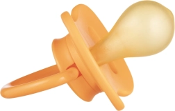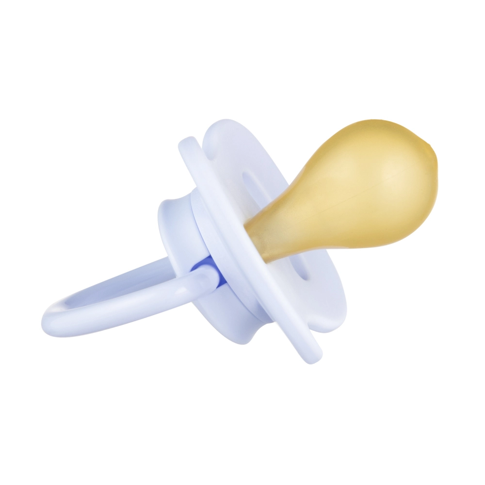 Miękki i elastyczny kauczuk łagodnie dopasowuje się do ust dziecka i wspiera naturalny odruch ssania. Żółtawy, lekko matowy materiał jest przyjemny w dotyku.