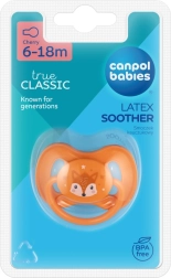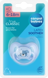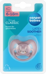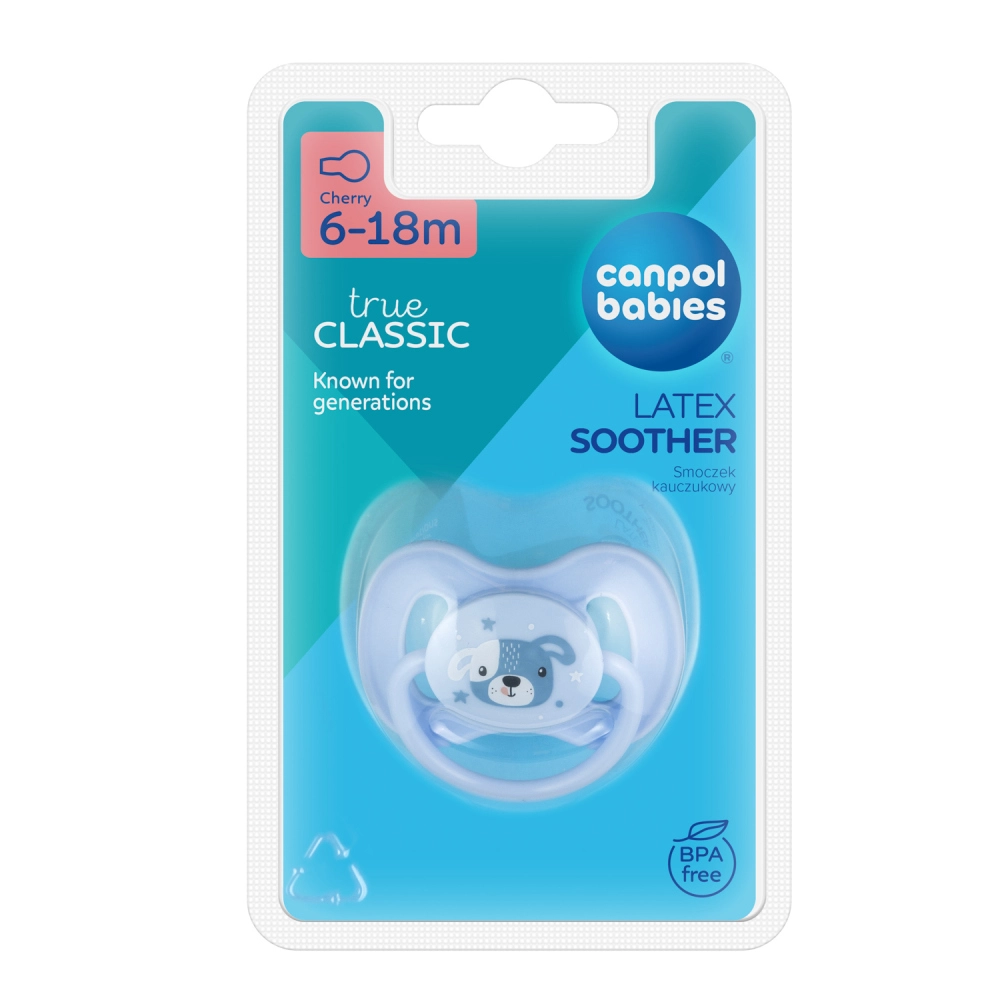 Smoczek Canpol babies z naturalnego kauczuku jest przyjemny w dotyku, lekko matowy i delikatny dla wrażliwych dziąseł. Końcówka w kształcie wisienki wspiera naturalny odruch ssania i zapewnia dziecku komfort podczas uspokajania. Estetyczne motywy z kolekcji CUTE ANIMALS spodobają się zarówno dzieciom, jak i rodzicom.