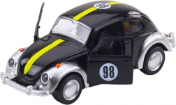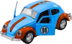 Klasyczna sylwetka garbusa z pasami wyścigowymi i numerem 98 sprawia wrażenie mini repliki auta wyścigowego – idealna do zabawy i ekspozycji.