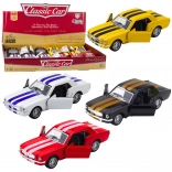Stylowy metalowy samochodzik w skali 1:32 ucieszy dzieci i kolekcjonerów. Ma napęd pull-back, otwierane drzwi oraz detaliczne wykonanie karoserii w stylu retro muscle car. Idealny do zabawy i jako model kolekcjonerski.