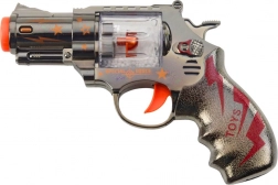 Zabawny dziecięcy rewolwer dla małych poszukiwaczy przygód oferuje realistyczny wygląd i efektowne akcje. Po naciśnięciu spustu aktywują się efekty świetlne i dźwiękowe, a w magazynku poruszają się kulki, co wiernie naśladuje działanie prawdziwej broni. Lekka i bezpieczna konstrukcja z wysokiej jakości plastiku gwarantuje wygodny chwyt i bezpieczną zabawę w domu i na zewnątrz.