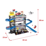 Uporządkuj swoją flotę w przejrzystym czteropoziomowym garażu z lądowiskiem dla helikopterów! W zestawie znajdują się 4 kondygnacje, helikopter oraz 3 metalowe autka o długości ok. 7–8 cm. Po złożeniu garaż ma wymiary 42 × 60 × 33 cm i jest odpowiedni dla dzieci od 4 lat. Nie ma możliwości wyboru konkretnych modeli. Uwaga: produkt jest zapakowany w opakowanie zastępcze.