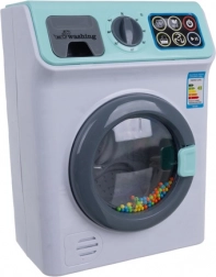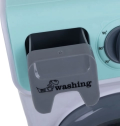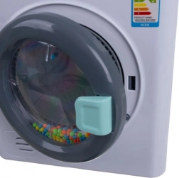 - Elementy interaktywne: otwierane drzwiczki, przezroczysty bęben z kolorowymi kuleczkami, wysuwana szuflada na detergent.