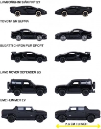 Ten zestaw prezentowy zawiera pięć ikonicznych pojazdów w jednolitym, kolekcjonerskim stylu: LAMBORGHINI SIÁN FKP 37, LAND ROVER DEFENDER 90, BUGATTI CHIRON PUR SPORT, GMC HUMMER EV oraz TOYOTA GR SUPRA. Każdy model oferuje realistyczne proporcje, subtelne detale nadwozia i wnętrza oraz płynny wolny bieg do zabawy i ekspozycji.