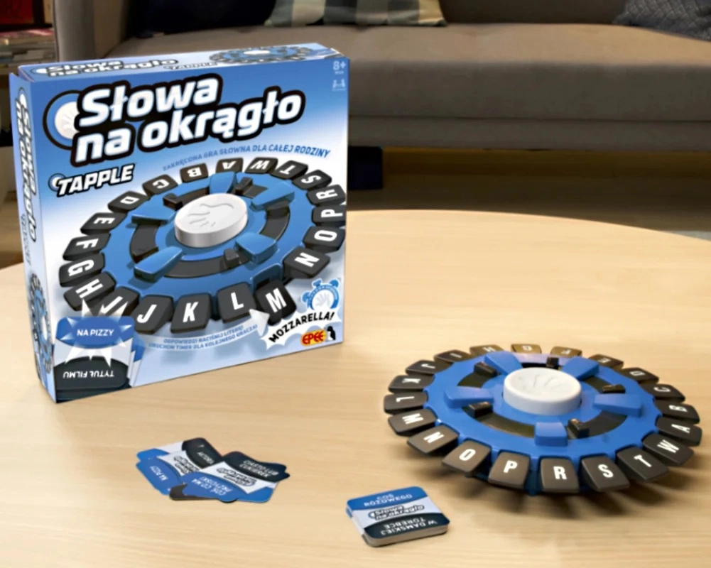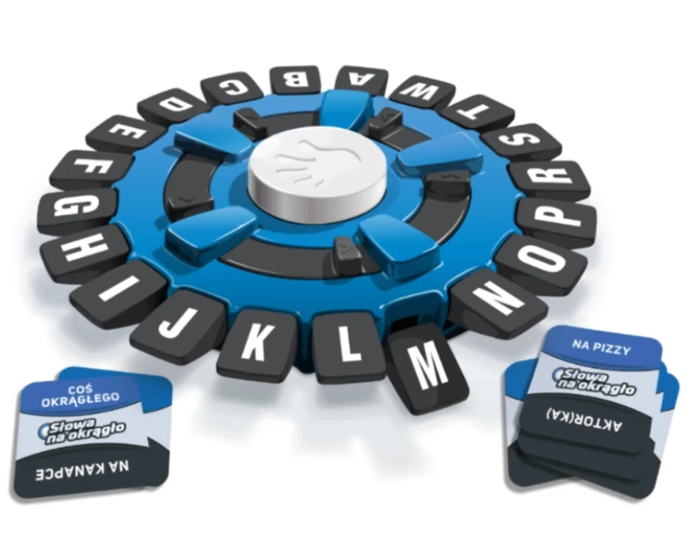 Słowa na okrągło to dynamiczna gra imprezowa, w której liczą się szybkość, pomysłowość i stalowe nerwy. Gracze wybierają kategorie z kart, w ciągu 10 sekund wymyślają właściwe słowo, naciskają odpowiednią literę na kole i przekazują ruch dalej. Wraz z ubywaniem liter rośnie napięcie i zabawa. Ostatni w grze zdobywa kartę – kto zbierze trzy, wygrywa!