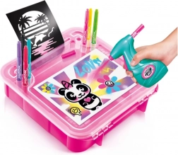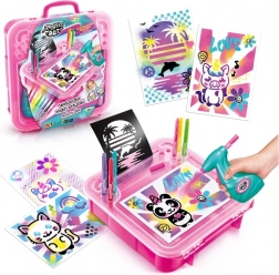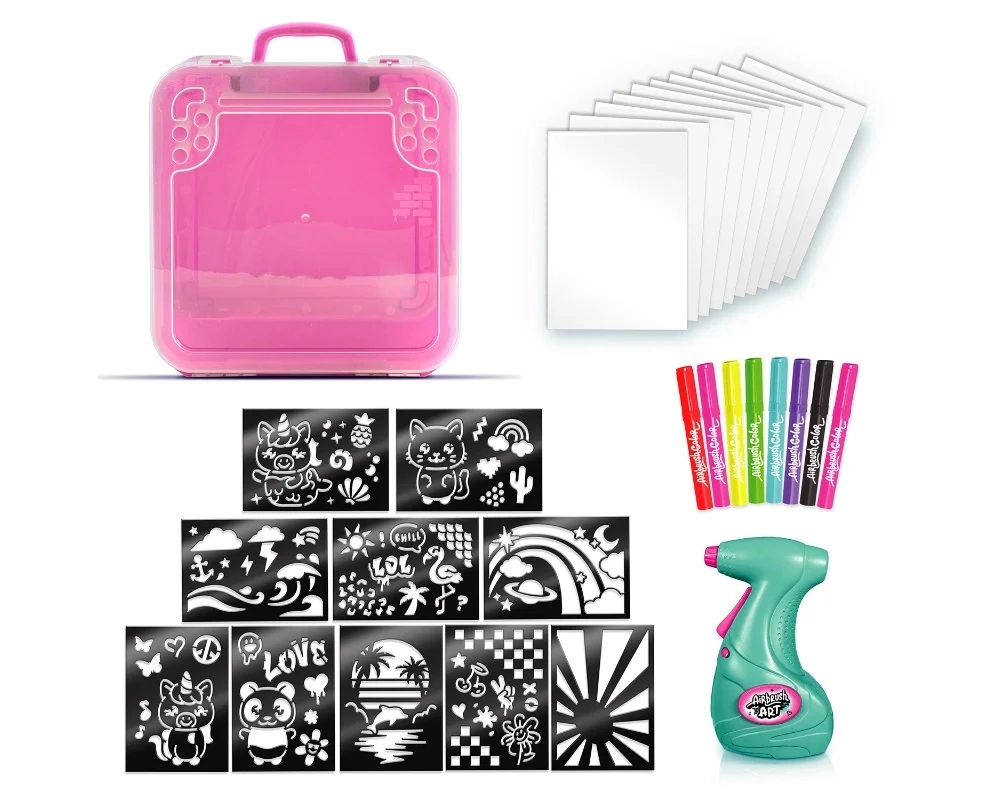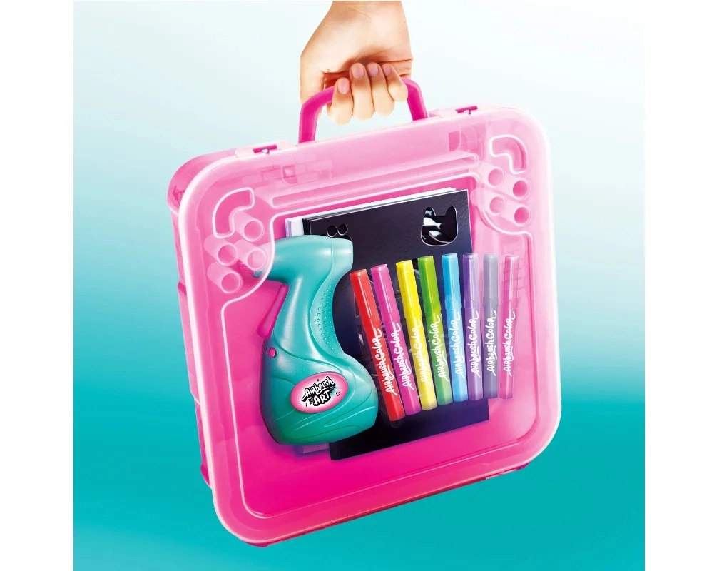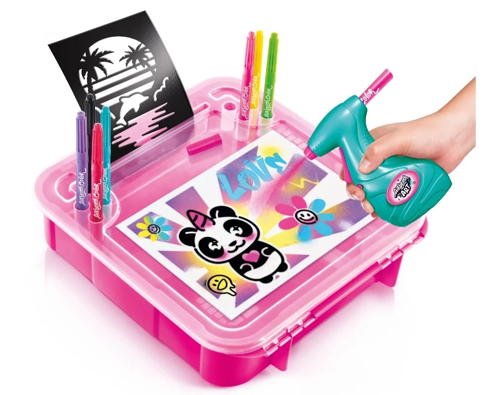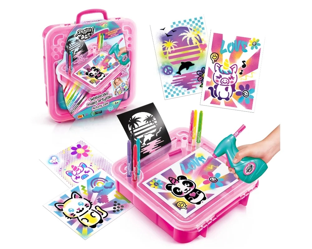 Lekki i przenośny kuferek kryje wszystko, czego mały artysta potrzebuje: aerograf, papier, szablony i farby. Dzięki prostemu sterowaniu i bezpiecznemu wykonaniu zestaw to świetny prezent, który wspiera motorykę małą, kreatywność i autoekspresję.