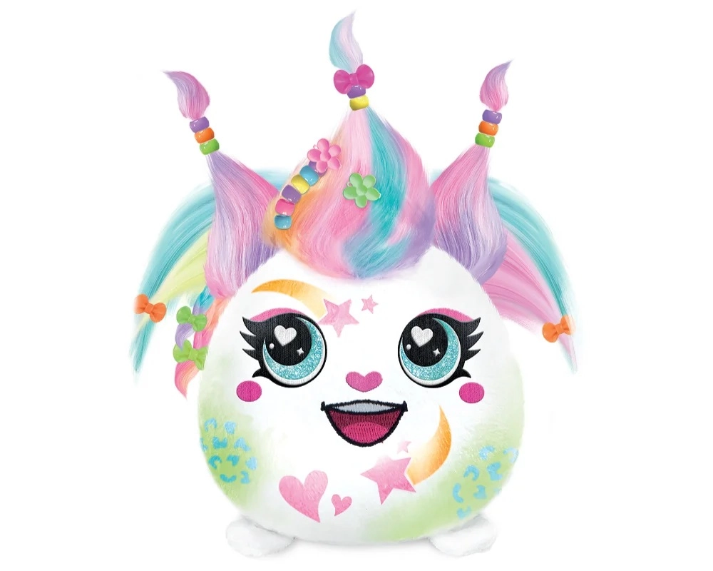 Spinki, gumki, koraliki i grzebień wspierają tworzenie warkoczyków, fal i ozdobnych detali. Stylizacja to świetna zabawa, a miękki plusz zachęca do przytulania.