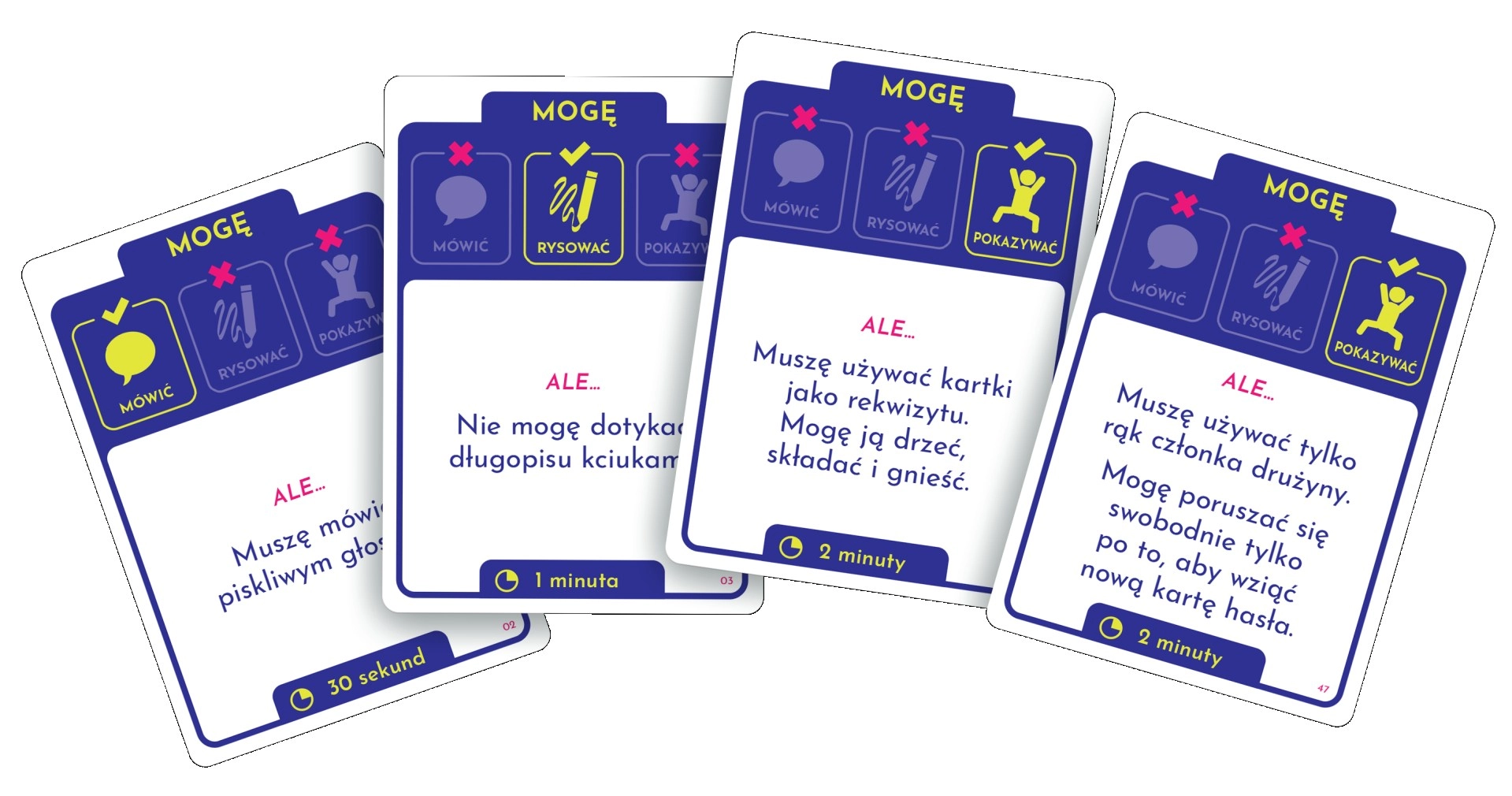 - 200 kart z hasłami i 55 kart wyzwań dla ogromnej różnorodności