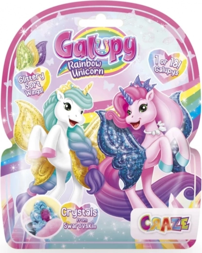 Odkryj magię świata Cristallopia z kolekcjonerską figurką GALUPY RAINBOW UNICORN. Każdy jednorożec ma miękkie, błyszczące skrzydła w kolorach tęczy, majestatyczny metaliczny róg oraz koronę z prawdziwym kryształem Swarovski. W kolekcji znajduje się 18 unikatowych figurek, w tym 2 rzadkie – idealne dla kolekcjonerów i miłośników jednorożców.