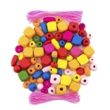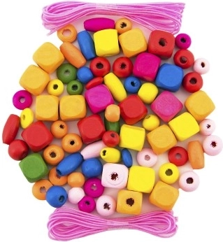 Ten zestaw zawiera różnorodne rodzaje i kształty koralików w wesołych kolorach. Dzieci mogą nawlekać koraliki na gumki i tworzyć unikalne bransoletki i naszyjniki, które są rozciągliwe.