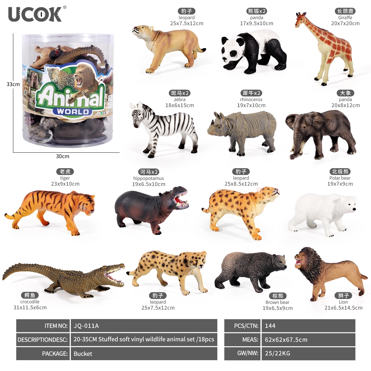 Ta bogata kolekcja zawiera ulubione zwierzęta, takie jak lew, żyrafa, słoń, tygrys, panda, krokodyl czy nosorożec. Realistyczne kształty i malowane detale zachwycą małych miłośników przyrody oraz rodziców szukających wysokiej jakości i bezpiecznych zabawek. Przenośne, zamykane wiaderko trzyma wszystkie figurki razem i ułatwia przechowywanie oraz podróżowanie.