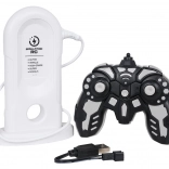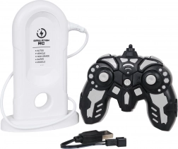 W zestawie znajduje się stacja symulująca ładowanie oraz przewód USB. Akumulator 3,7 V jest w komplecie, wystarczy włożyć baterie do pilota.