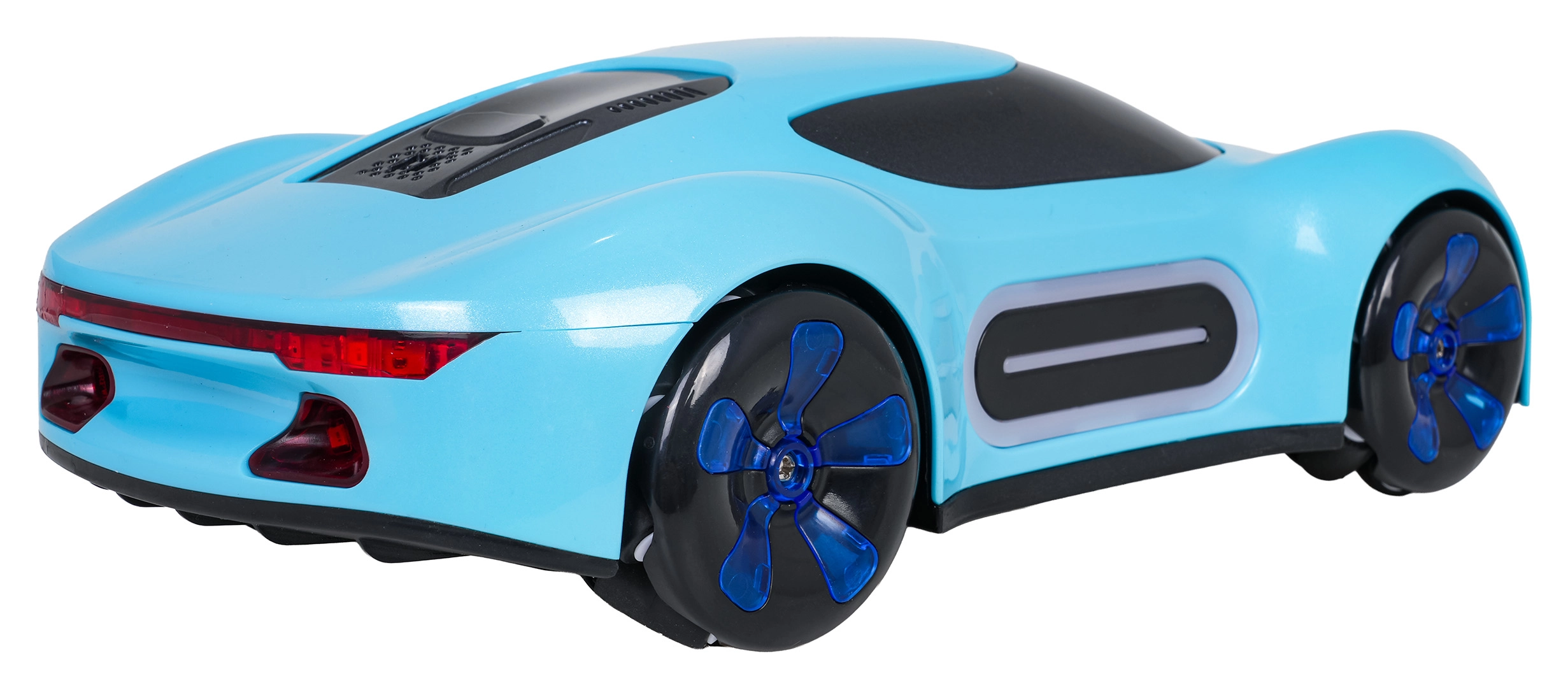 Auto potrafi jechać do przodu/tyłu, skręcać w prawo/lewo, poruszać się bokiem, driftować i wykonywać obroty 360°. Sterowanie jest intuicyjne – wybierz pilot ręczny lub gesty zegarkiem. W zestawie znajduje się ładowany akumulator 3,7 V i kabel USB do wygodnego ładowania.